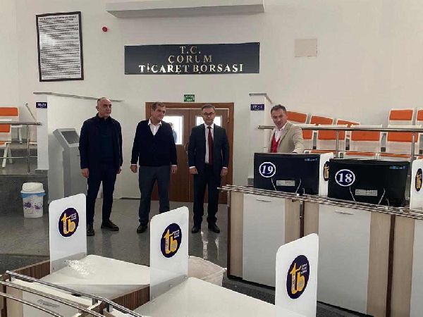 Adalet Komisyonu Başkanı Hasan Öztürk borsamızı ziyaret etti. Yönetim Kurulu Üyeleri Mustafa Şahan ve Tuna Eser'in de hazır bulunduğu ziyarette Meclis Başkanı Yılmaz Kaya ve Yönetim Kurulu Başkanı Naki Özkubat, nazik ziyaretlerinden dolayı Adalet Komisyonu Başkanı Hasan Öztürk'e teşekkür ettiler.