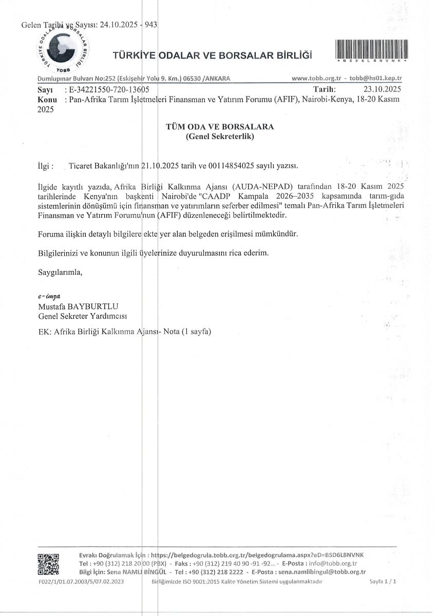Pan-Afrika Tarım İşletmeleri Finansman ve Yatırım Forumu (AFIF), Nairobi-Kenya, 18-20 Kasım 2025