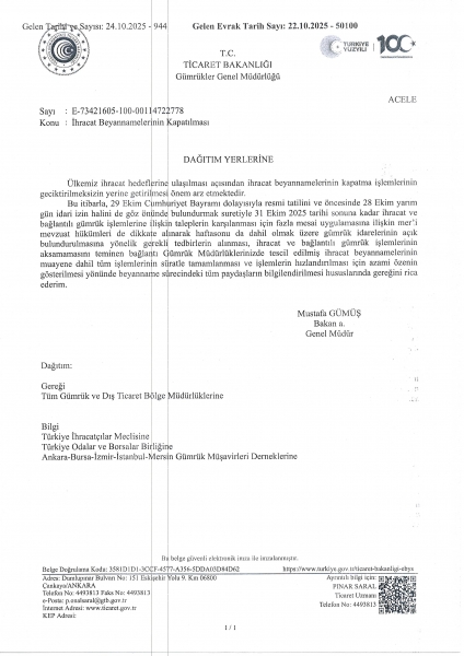 İhracat Beyannamelerinin Kapatılması