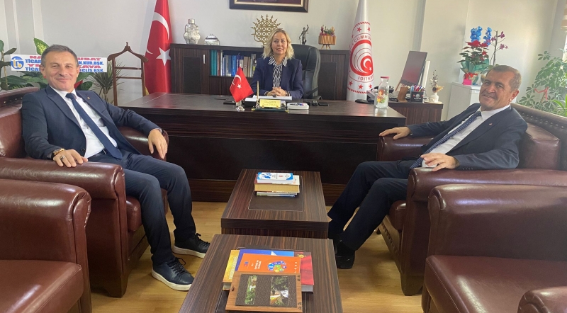 Yönetim Kurulu Başkanımız Naki Özkubat ve Meclis Başkanımız Yılmaz Kaya Ticaret İl Müdürümüz Sayın Tülay Şahin'i makamında ziyaret ettiler.