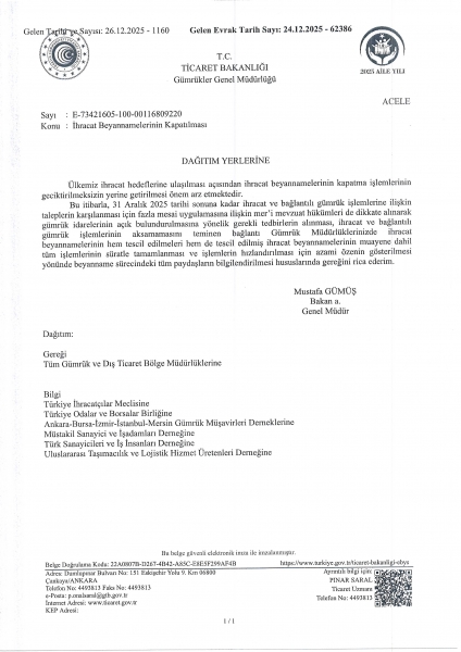 2025/13 Sayılı Genelge - Havayolu Gümrük Beyan Sistemi (HGBS)