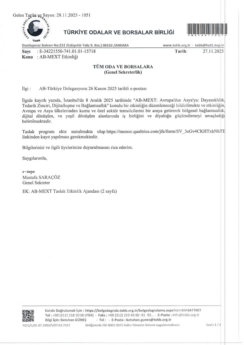 Aralık 2025 Elektronik Sohbet Toplantıları hk.
