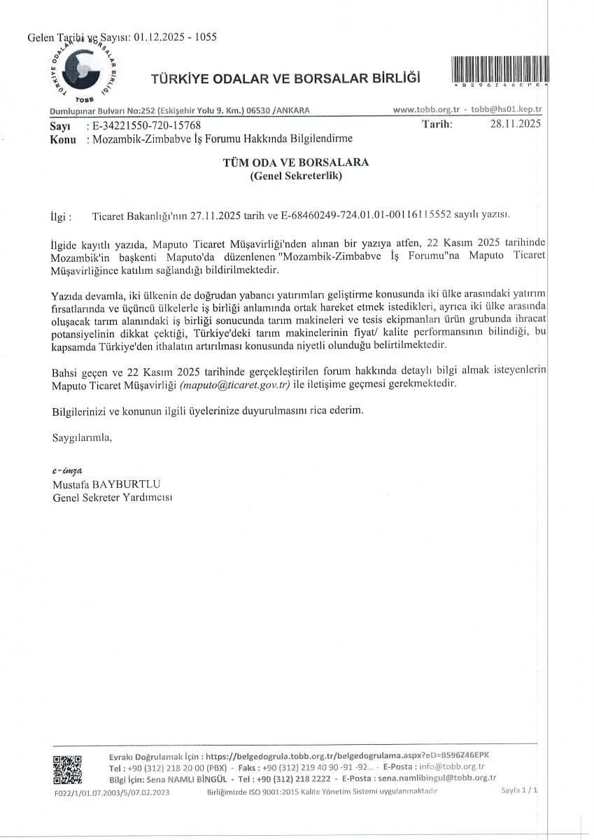 Mozambik-Zimbabve İş Forumu Hakkında Bilgilendirme